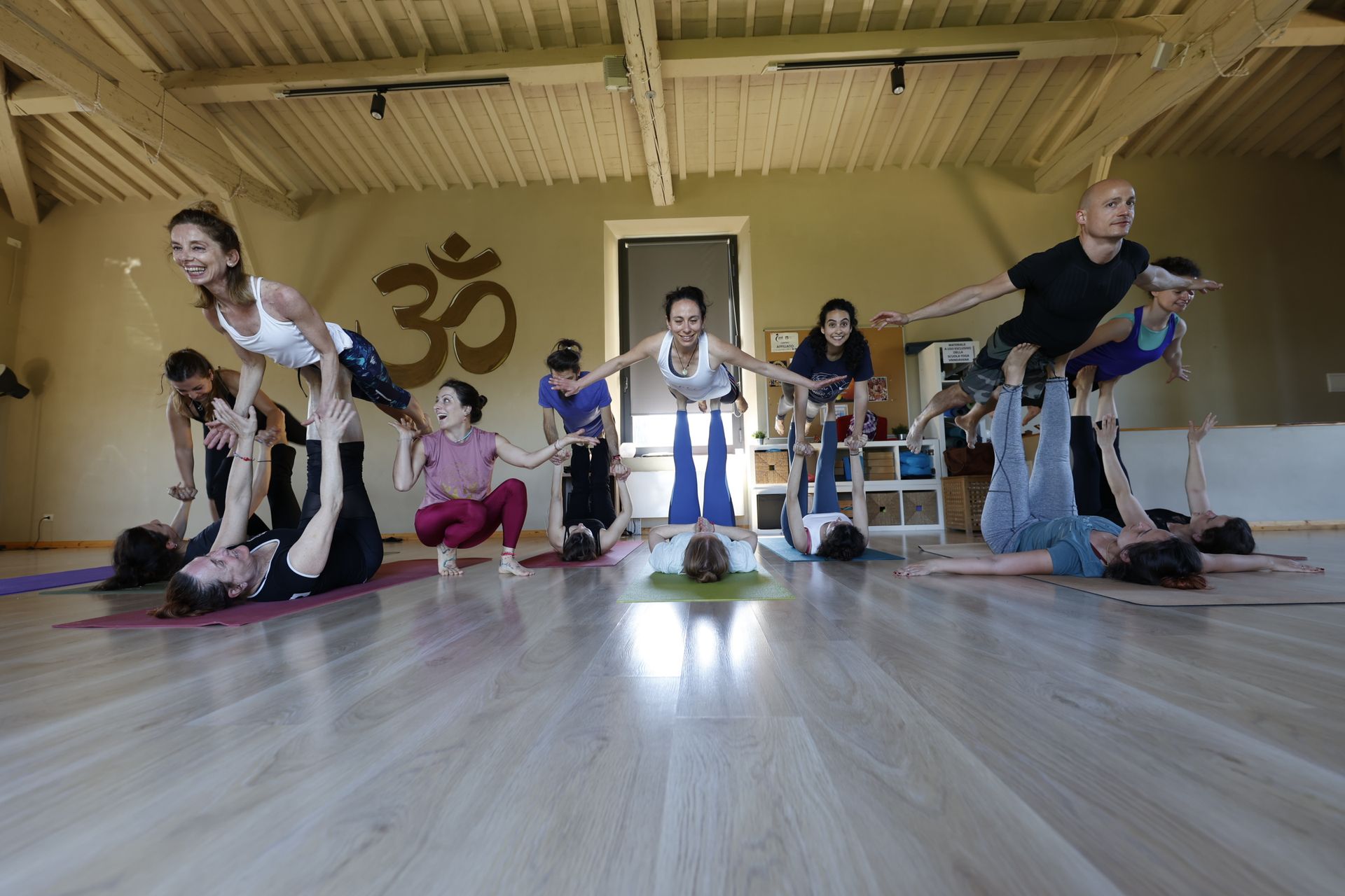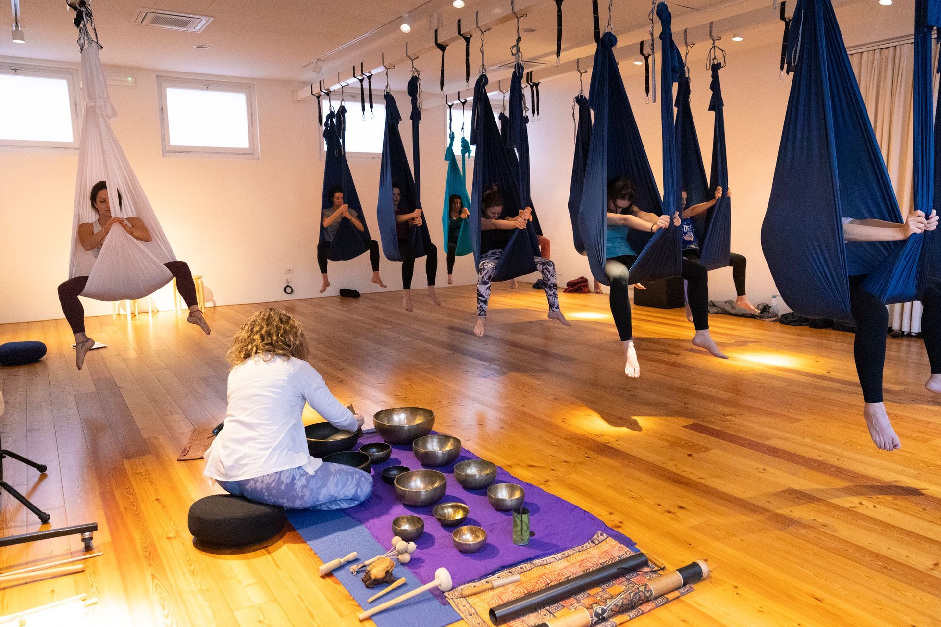 Acrobatica e allungamento sospesi su amaca o sul tuo compagno creeranno un lavoro dinamico e divertente per aiutarti ad acquisire fiducia in te stesso portandoti dove non avresti immaginato.
